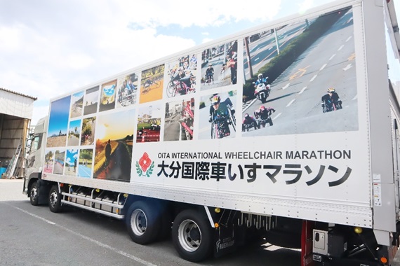 大分市大在の運送業「一番運輸」は、大型トラック1台に大分国際車いすマラソンをPRするラッピングを施している。始めたのは2023年の第42回大会から。1人の選手との出会いがきっかけだった。 宮崎県都城市の堤福仁(ふくと)さん(18)。2...