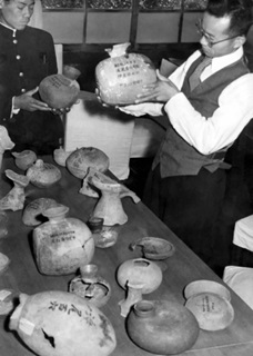 【昭和100年おおいたアーカイブス】1954(昭和29)年11月 中学校の運動場から土器