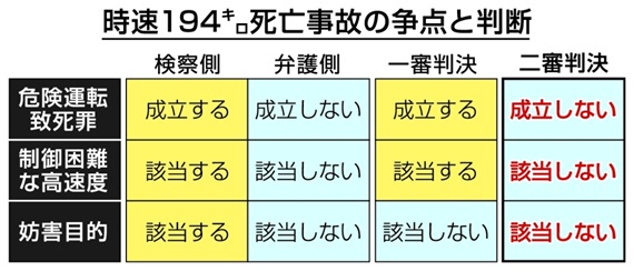 大分地検は「ハンドルやブレーキ操作のわずかなミスにより、車を進路から逸脱させる速度だった」と述べ、制御困難な高速度の認定を求めた。...