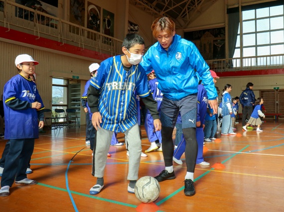 【宇佐】宇佐市安心院町の児童と大分トリニータの選手らが11月29日、ふれあいサッカー教室で交流した。...