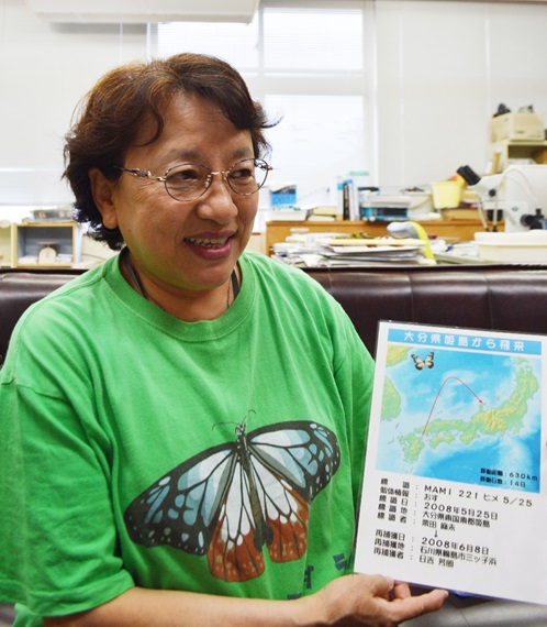 姫島でマーキングされたアサギマダラを能登半島で再捕獲した砂山美里子さん(66)=石川県珠洲市=にとって、姫島は憧れの場所になった。羽に「ヒメ」と記されたチョウとの出合いから9年後、念願かなって訪れた。「珠洲も遠い所ですが、姫島も遠かったで...