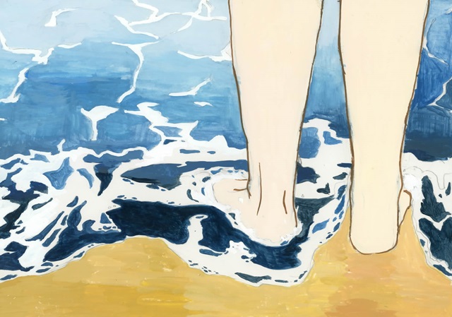 今まで戦で忙しかった城から移り住み、波の音を聞きながら心を穏やかにしているシーンを描いた。波の音が聞こえてくるような絵にしたかったので、しぶきを少し入れてみたりした。