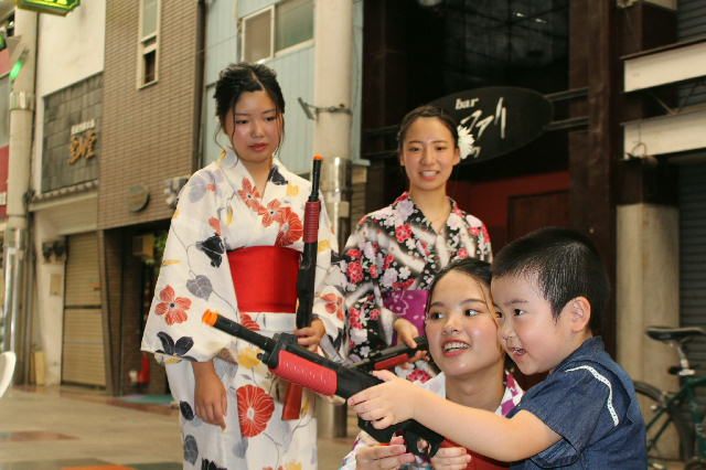 8月9日、部員は商店街で夜市の運営を手伝った。学びの場を提供してくれる街の人たちへの恩返しだ。ヨーヨー釣り、輪投げなどのブースを部員だけで運営した。
