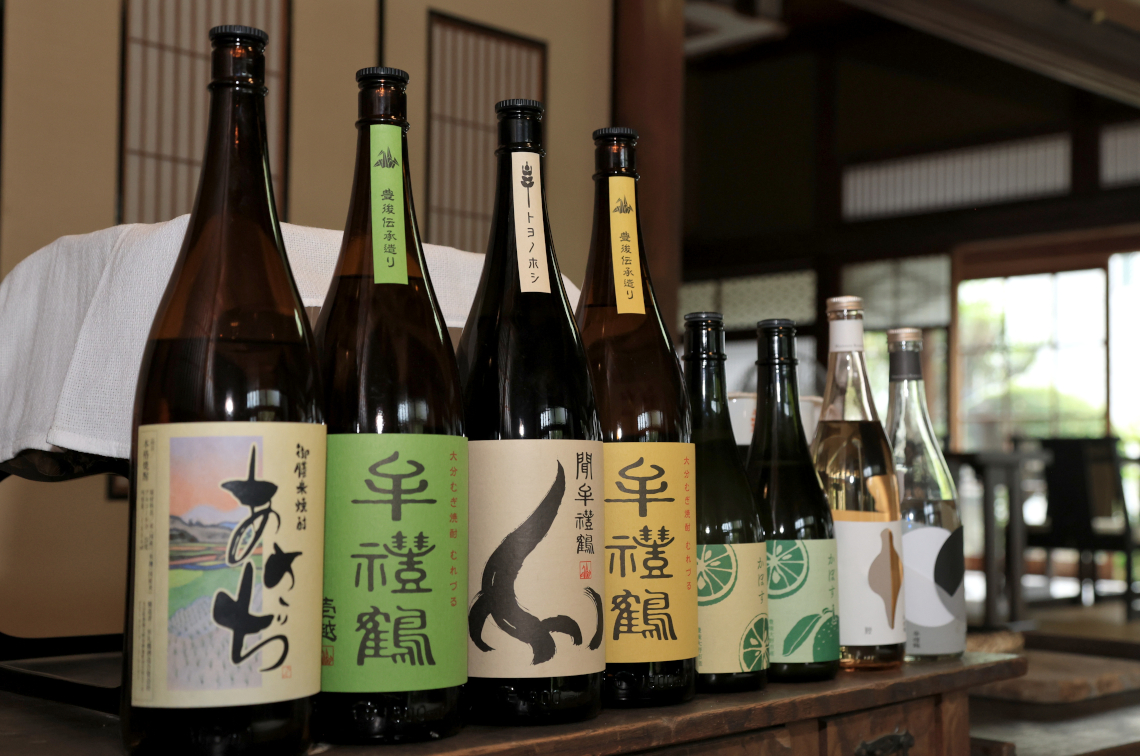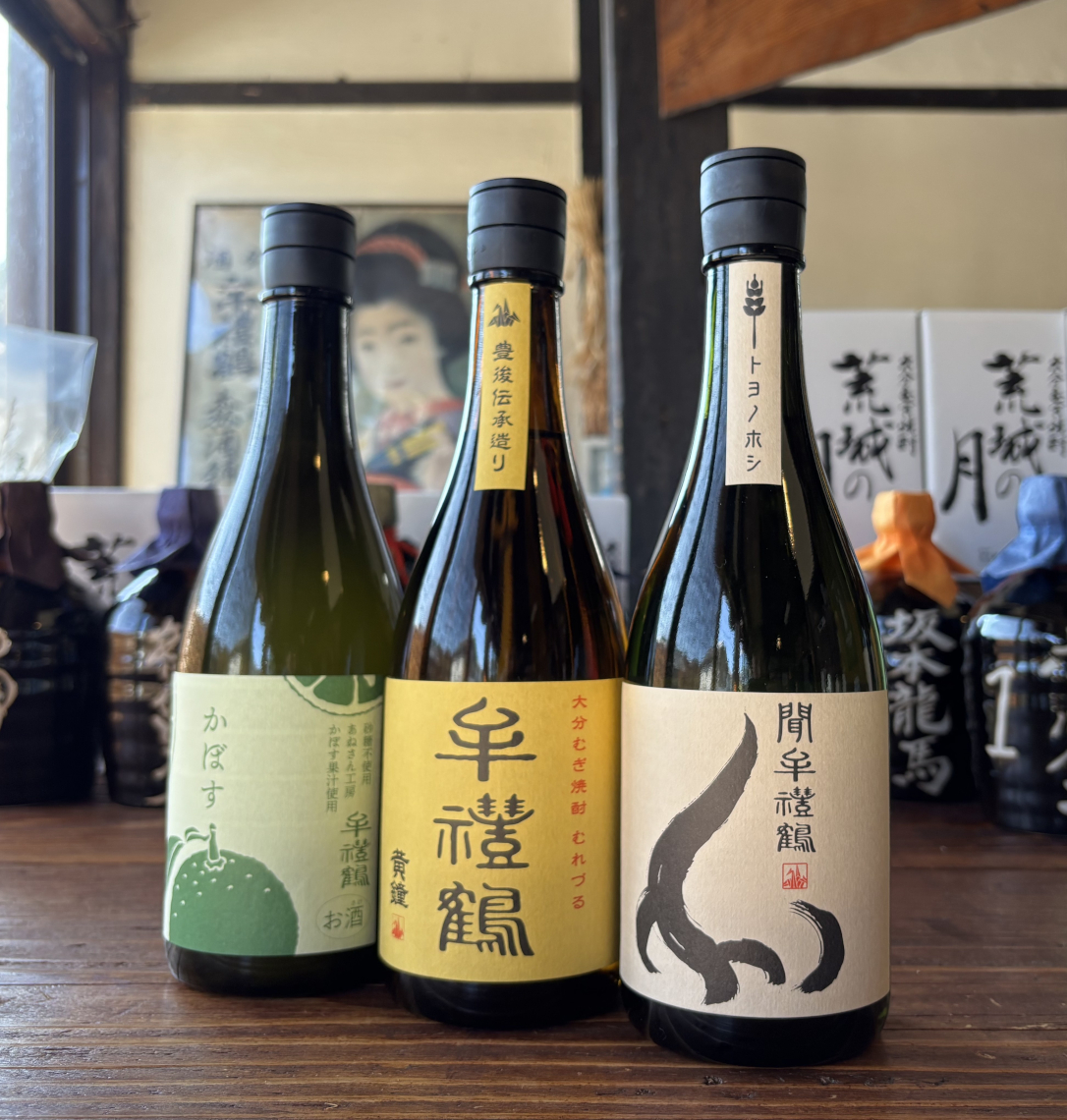オススメの聞牟禮鶴(右)、牟禮鶴黄鐘(中)、かぼすリキュール無糖(左)