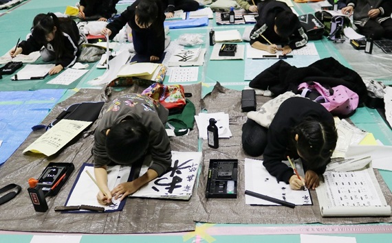 1月11日、大分市横尾のクラサス武道スポーツセンターで第30回県・第8回全国小中学生書道チャンピオン大会が開かれた。 「ドン、ドーンドンドン」―。佐藤樹一郎知事が太鼓を打ち鳴らし開始を告げた。予選を突破した小中学生の児童・生徒が一斉に...