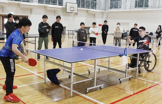 パラリンピアンを招いたパラ卓球の体験会が24日、大分市のさくらの杜高等支援学校であった。...