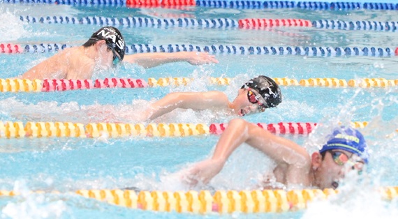 県冬季室内選手権は7日、大分市営温水プールであった。男女369人が出場。チャレンジレースを含めて14個の大会新記録が生まれた。...