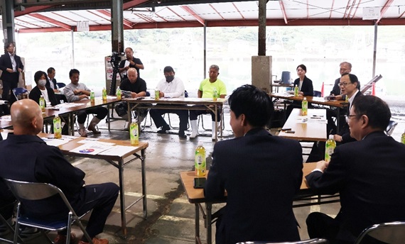 日出町の大神漁港で県政ふれあい対話 佐藤知事が漁師らと漁業現状について意見交換