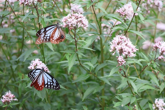 日出町の花公園でアサギマダラが羽休め 千キロの旅の途上、100~200匹飛び交う