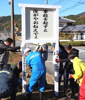 杵築市大田で幹線道路沿いの方言標語看板を新調 ユニークな言葉で安全運転呼びかけ