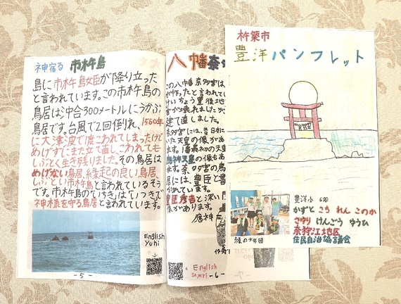杵築市豊洋小6年生が校区内の手書きパンフ作成 名所を紹介、アプリで翻訳し英語対応も