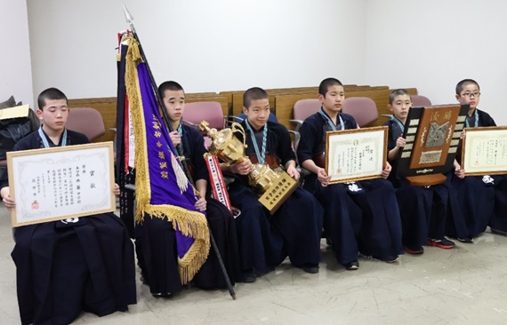 若鷲旗大会優勝の杵築中剣道部「厳しい練習の結果」 男子メンバーらが市長に報告