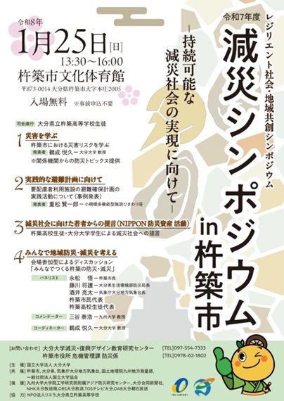 杵築市で25日に減災シンポジウム 講演や会場参加型のディスカッションも