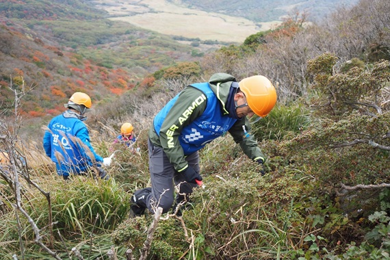 九電みらい財団が平治岳でミヤマキリシマの植生保護活動 登山道の整備も