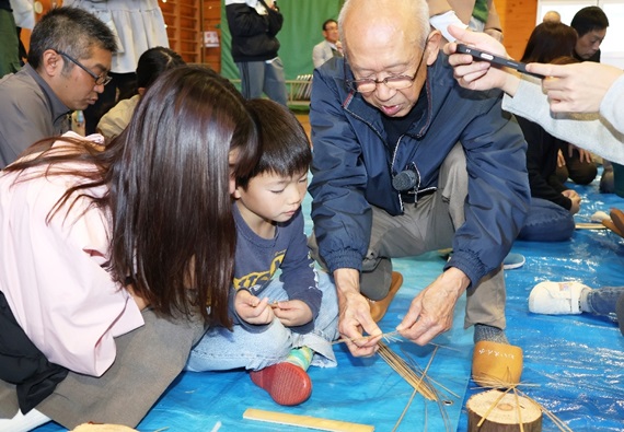 人間国宝の岐部さん、母校の九重町淮園小で竹工芸教える 児童「難しかったけど出来た」