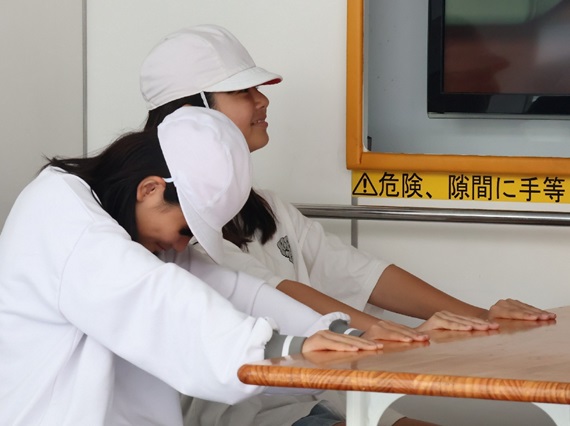 国東市の安岐小で地震体験車を使った授業 震度5強の揺れに児童「突然だったら怖そう」
