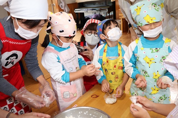 玖珠町の園児が新米でおにぎり作りに挑戦 給食で提供「軟らかくておいしかった」