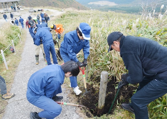 玖珠美山高生徒が九重町の沓掛山で登山道を補修 くじゅう連山保全「携われうれしい」