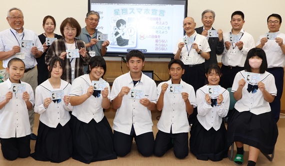 「スマホ、適切な使用を」くす星翔中生徒会が啓発ステッカー作成 家に掲示し「家族で話し合うきっかけに」