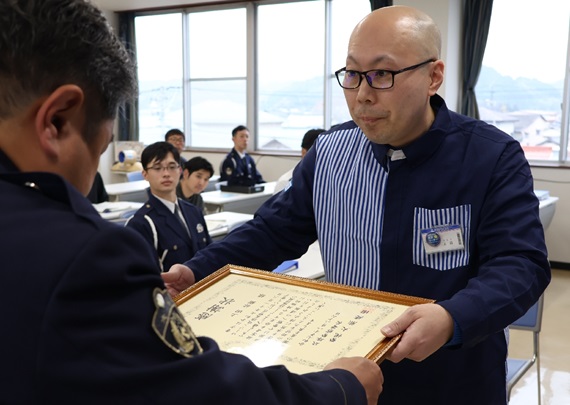 詐欺被害防いだコンビニ店長の上田さんに感謝状 玖珠署で贈呈式、表彰は3回目