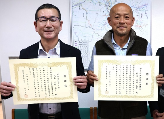 大分県玖珠土木事務所が3団体に感謝状贈呈 県道で草刈りボランティア