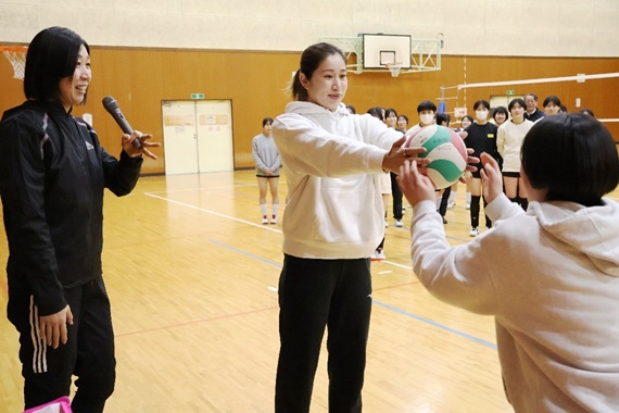 女子バレー元日本代表が玖珠町で教室 荒木さんと東龍出身の長岡さん、小中高校生を指導