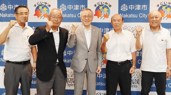 中津シルバー、全日本還暦軟式野球に向け闘志 市役所を訪問