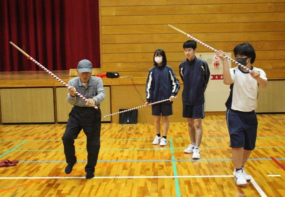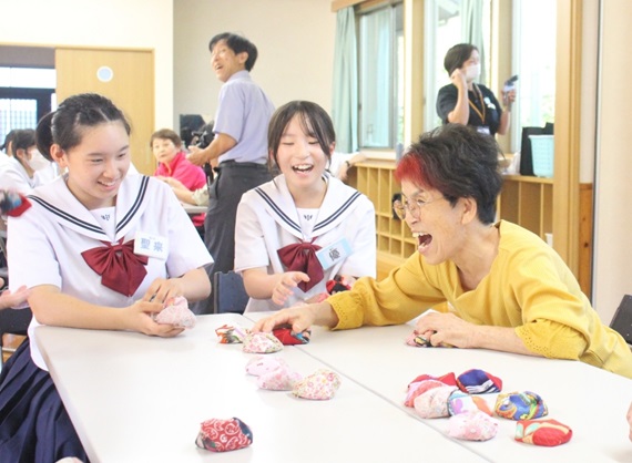 佐伯市の直川中生徒と地域住民が「ふれあい交流会」 けん玉、お手玉など昔なつかしい遊びを楽しむ