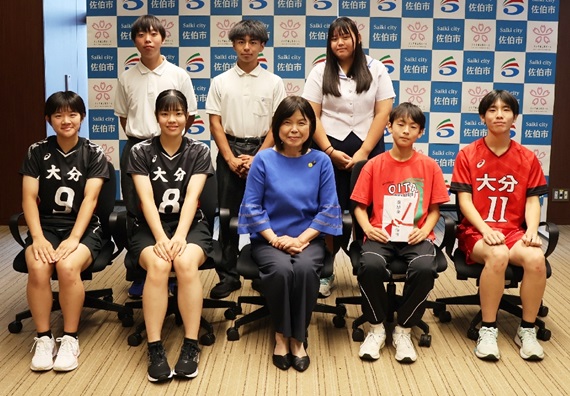 スポーツ全国大会に出場の小中学生7人「県代表として頑張る」 佐伯市長に決意表明