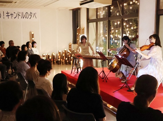淡い光と演奏…佐伯市本匠で「キャンドルの夕べ」 家族連れらが環境問題考える