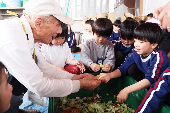 佐伯市のルンビニこども園で「野菜づくり教室」 微生物の力で生ごみを土づくりに生かす方法学ぶ