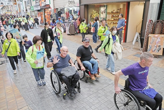 第44回大分国際車いすマラソンの開会式が15日、大分市中央町のガレリア竹町ドーム広場で開かれた。国内外の選手やボランティアら計約100人が参加。商店街をパレードして市民と交流した。 大会会長の佐藤樹一郎知事が「多くの感動を生み出し、名...