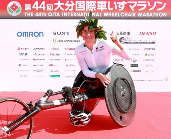 「ホームのような大分で優勝できて本当にうれしい」 マラソンT34/53/54女子は、2年ぶりに出場したマニュエラ・シャー(40)=スイス=が圧巻の走りで完勝。2019年以来、5度目の栄冠に輝いた。 出場9度目となじみのある大分を「...