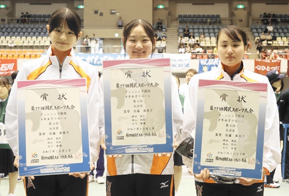 優勝を逃し、大粒の悔し涙を流した。頂点が期待されたフェンシング少年女子フルーレは要所で力を発揮できず、4位に終わった。 高3の岡田風花(翔青)と西山花桜(豊府)、中3の石川愛瑚(上野ケ丘)で臨み、3位決定戦の相手は鹿児島。岡田が「国ス...