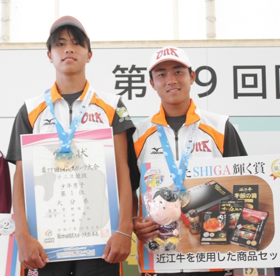 第79回国民スポーツ大会(滋賀国スポ)は2日、大津市大石緑地スポーツ村コートなどであり、県勢は3競技に臨んだ。 テニス少年男子で舞鶴高の太田周・安藤大和が頂点に立ち、今大会の優勝第1号となった。個人はボクシングの成年男子フライ級で荒木...