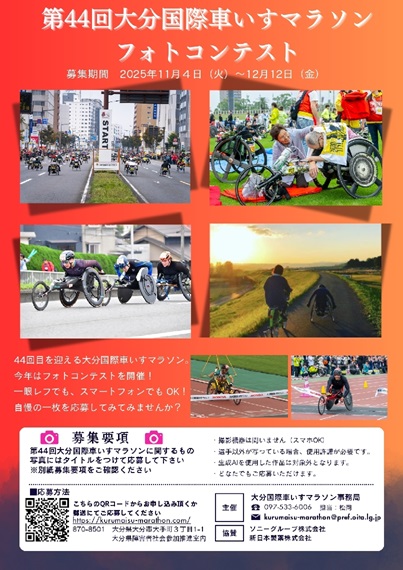 第44回大分国際車いすマラソン事務局は、レースや応援の様子などを撮影した写真を募集する「フォトコンテスト」を初めて開催する。4日から応募受け付けを始めた。...