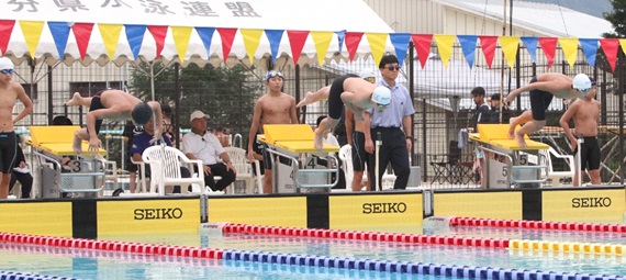 県中学校新人大会は27日、別府市営青山プールなどで始まった。初日は水泳と陸上があった。...