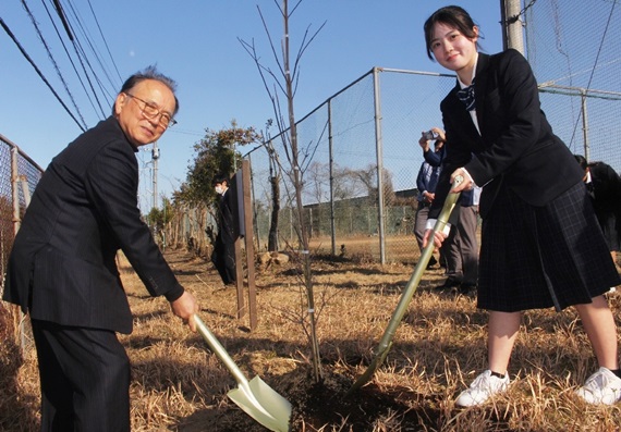 竹田中が校庭に新たにハナミズキ10本植樹 「緑の募金」活用、式典に関係者40人出席