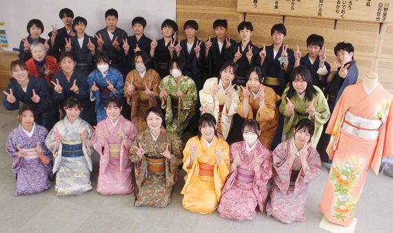 竹田中の生徒が着物体験 写真撮影も楽しむ