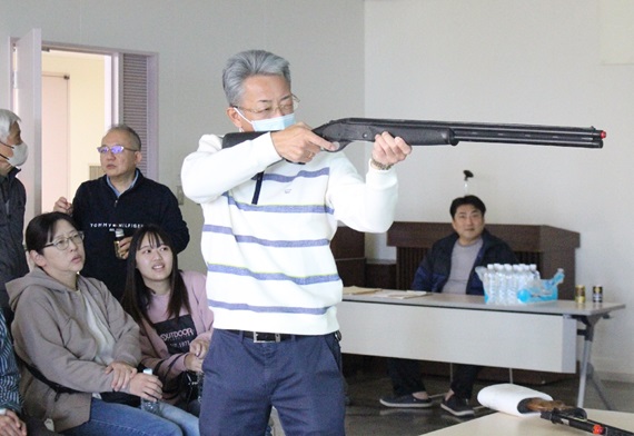 「クレー射撃や狩猟に関心を」津久見市で体験会 実寸大の模擬銃使い競技に挑戦