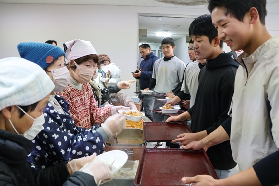 臼杵市の海辺婦人学級、韓国の高校野球選手をカレーで激励
