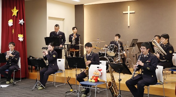 陸自湯布院駐屯地音楽部が幼稚園などでクリスマス演奏会