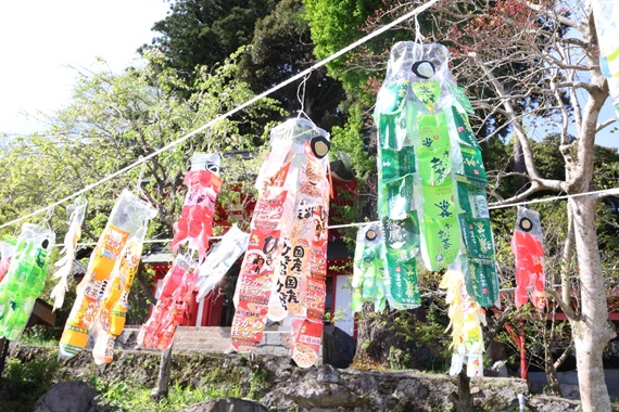 プラごみ再利用「ECOいのぼり」キラキラ 由布市お茶の間サロン「かぐや会」が制作