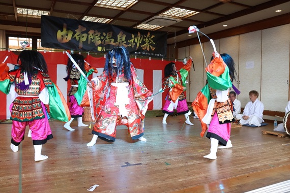 由布市湯布院町で神楽「月一の奉」始まる 初回は湯平谷川神楽座、激しい舞で観客沸かす