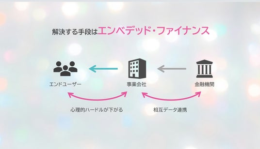 エンドユーザーは普段使っているアプリの中で、自然にお金を借りることができるため心理的ハードルを下げられる上に、データ連携により自分に合った与信を受けられることになります。