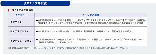 - コーポレート・サステナビリティ活動の一環として、対象となるサステナブル投資プロダクトの運用資産残高に連動して、環境・社会課題の解決に取組む団体へ寄付を実施する「はぐくむ投資プラス」スキームを導入しました(本編P58)。