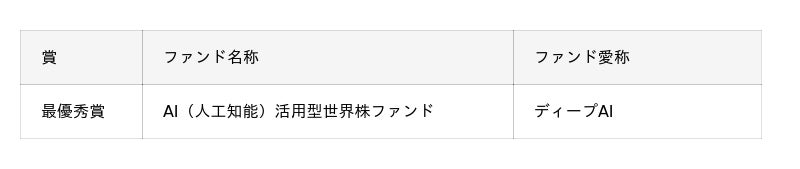最優秀賞を獲得した「AI(人工知能)活用型世界株ファンド(愛称:ディープAI)」は昨年の優秀賞に続き2年連続の受賞、「One高配当利回り厳選ジャパン」は今回初めての受賞となりました。