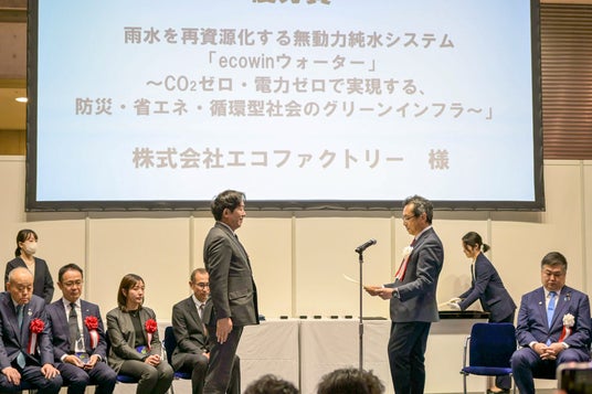 株式会社エコファクトリー(本社:熊本県熊本市、代表取締役会長:村上尊宣、代表取締役社長:村上尊由、以下「エコファクトリー」)が展開する、雨水を無動力で純水化するシステム「ecowin WATER」が、一般社団法人サステナブル経営推進機構(SuMPO)主催「第8回エコプロアワード」において優秀賞を受賞しました。