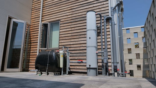 「ecowin WATER」は、建物の屋上や敷地に降った雨水を無動力で純水化し、多用途に活用できる純水システムです。