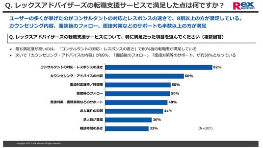 レックスアドバイザーズの転職支援サービスについて、満足した項目に関するアンケート回答